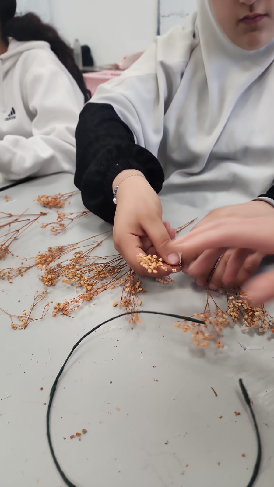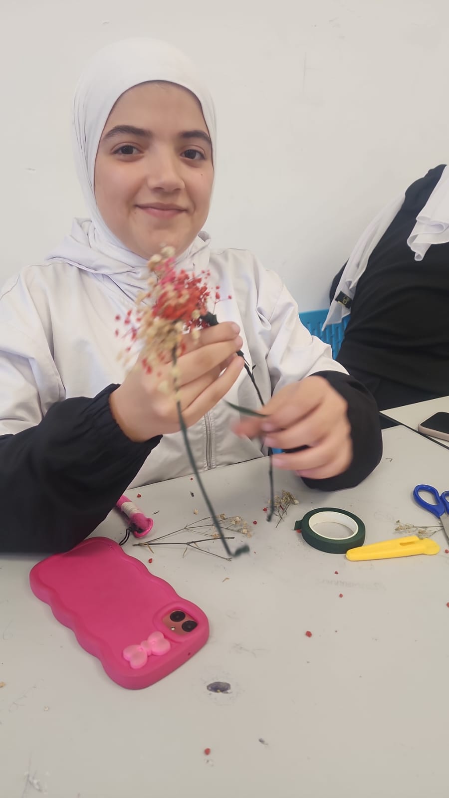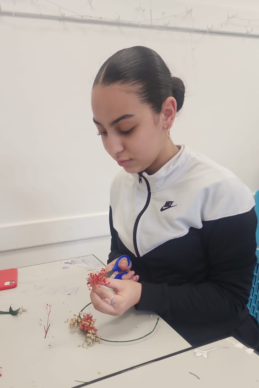 وهدفت الورشة إلى تعريف الطالبات بأساسيات تنسيق الزهور وتطوير حسهن الفني، إضافة إلى تعزيز المهارات الحياتية مثل الصبر، التنظيم، وحب الجمال الطبيعي.