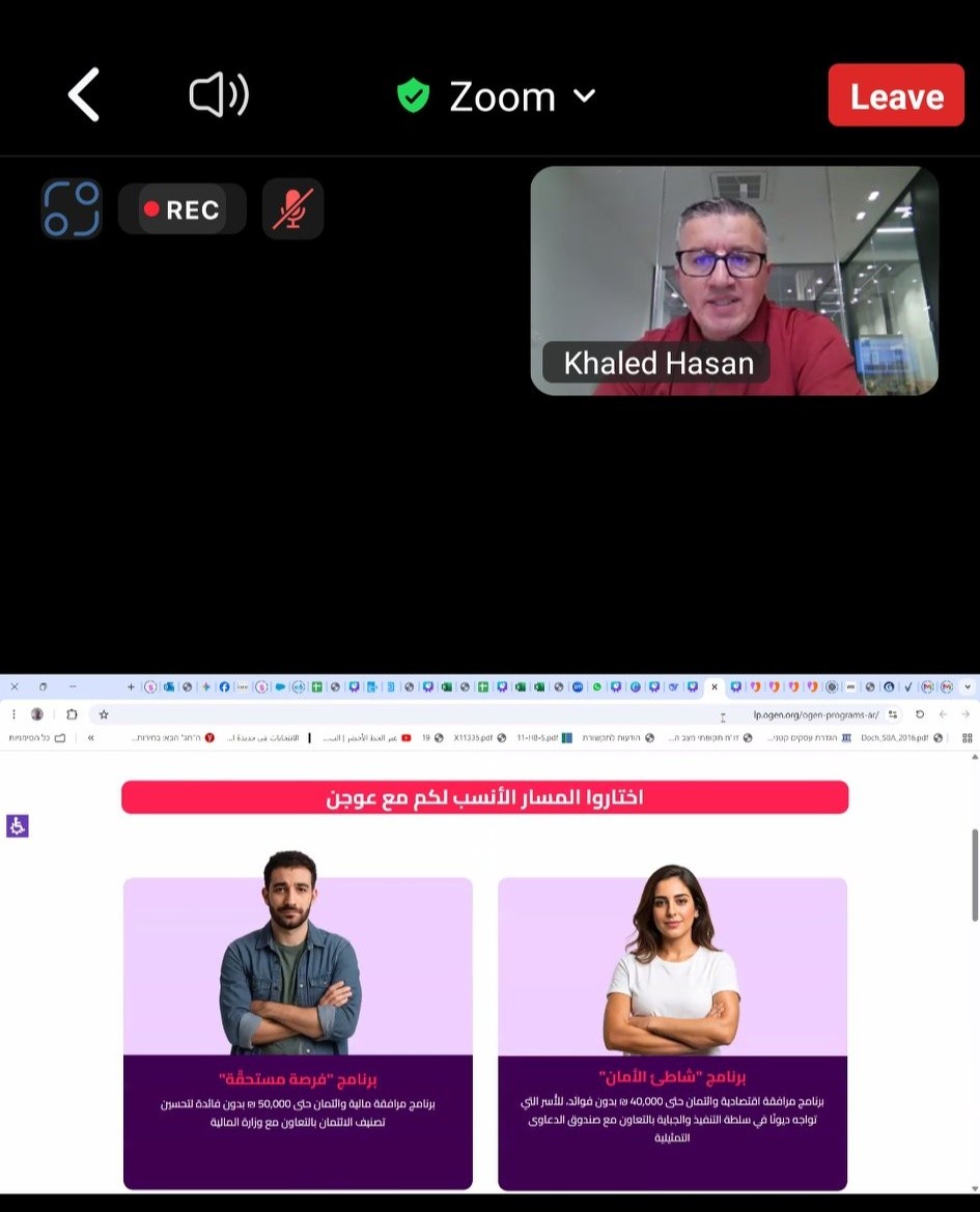 شارك العشرات من الطلاب الجامعيين العرب والأهالي وممثلين عن كليات، أمس الثلاثاء 14 أكتوبر/ تشرين الأول 2025، في لقاء توجيهي مميز عبر "الزوم"، تحت عنوان "توجيهات مالية لإدارة وتمويل السنة الدراسية"، وذلك بتنظيم مؤسسة عوجن، بالشراكة مع جمعية المعالي للتوجيه الأكاديمي وصندوق القرض الخيري.